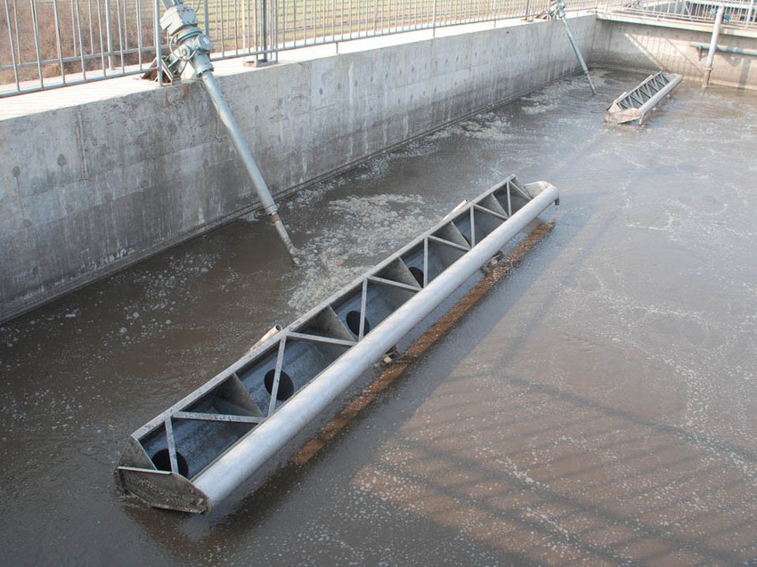 潷水器是間歇式活性污泥法處理污水的必配機械裝置。間歇式活性污泥法的污水處理機制與普通活性污泥法相同,其區(qū)別在于原污水不是順次流經各個處理單元而是放流到單一反應池內,按時間順序實現不同目的的操作,其基本操作程序由進水、反應、沉淀、出水和待機等五個基本過程組成。從污水流入開始到待機時間結束為一個周期。潷水器通過電控柜內的時間繼電器和螺旋推進裝置內的引程開關,實現定時、定量排放達標處理水,從而使SBR池實現連續(xù)處理污水的最終目的。