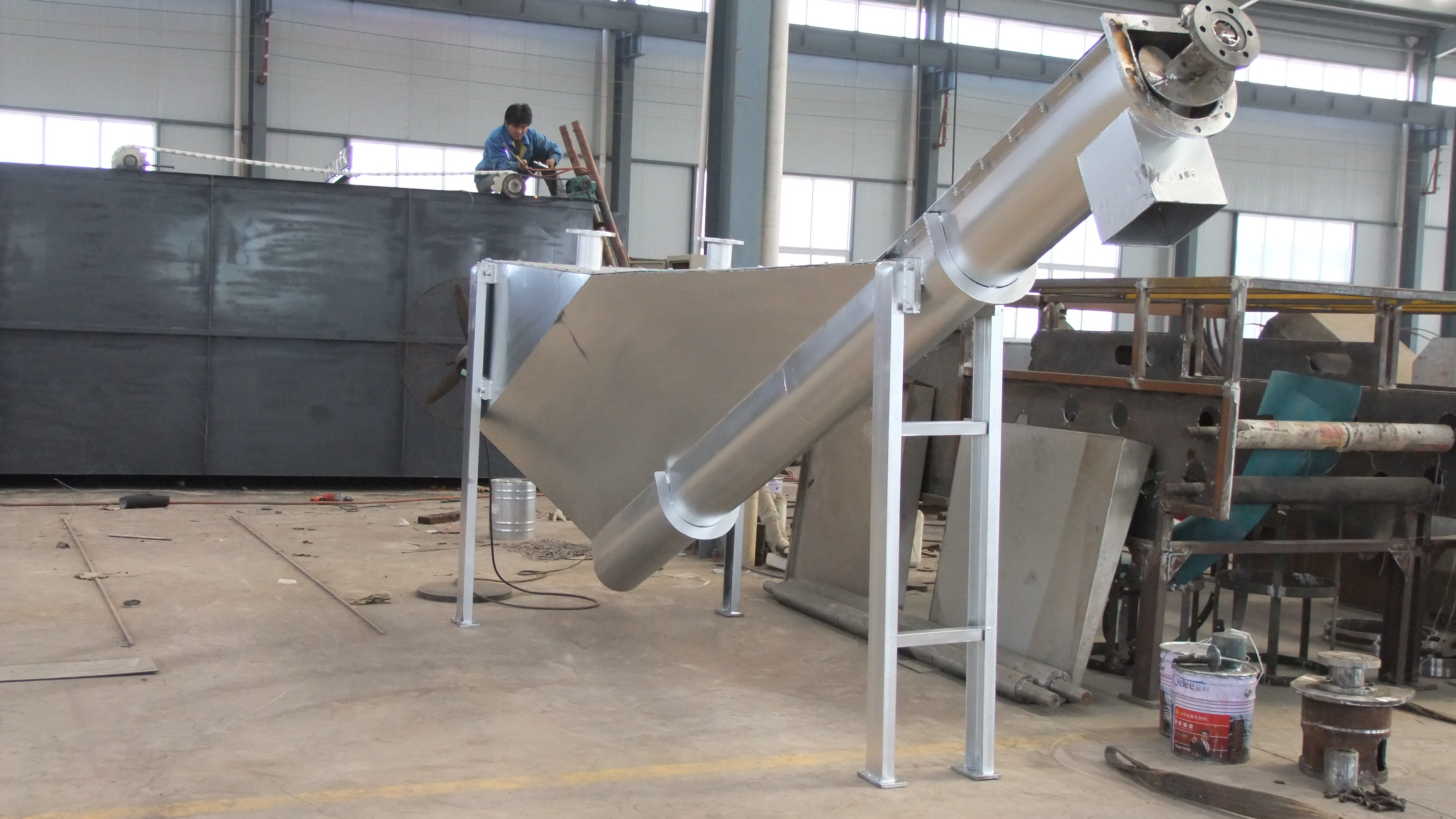 砂水混合物從分離器一端頂部輸入水箱,混合液中重度較大的,如砂粒等將沉積于槽型底部,在螺旋推動下,砂粒沿斜置的槽底提出升,離開液面后繼續(xù)推移一段距離,在砂粒充分脫水后經(jīng)排砂口卸至盛砂桶,而與砂水分離后的水從溢流口排出并送往廠內(nèi)進水池。